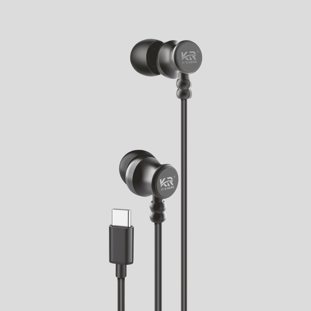 Powerful Bass Wired Earphones, USB Type-C, Mic & Remote, 1.2 Meter, Black & White, KR-32